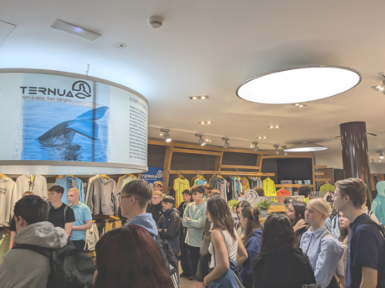 Aufgrund schlechter Wetterbedingungen hatten wir eine etwas turbulente Anreise und kamen viel später als geplant in San Sebastian an. Am Dienstag, den 08.10., hatten wir den ersten Projekttag. Es fing an mit einer einstündigen Busfahrt zu dem Unternehmen Ternua. Die Firma stellt umweltfreundliche Outdoor Kleidung her. Zu Beginn der Führung hat der Gründer der Firma ihre Produkte und Ideen vorgestellt; anschließend konnten wir aktuelle Fashion begutachten. An diesem Tag haben wir uns mit den Holländern und Spaniern angefreundet. Nach der Tour haben wir die Schule Nazaret besucht und zu Mittag gegessen. Zunächst haben wir uns während des Mittagessens weiter kennengelernt und im Anschluss haben wir eine spannende Präsentation über San Sebastian von einheimischen Schülern bekommen.