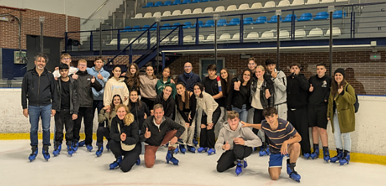 Am Mittwoch, den 09.10., wurden wir in Gruppen aufgeteilt und haben Präsentationen über uns gehalten, um uns besser kennenzulernen. Nachdem wir uns gegenseitig über unsere Hobbys informiert haben, überlegten wir, wie wir diese nachhaltiger gestalten können. Mit unseren Ergebnissen haben wir eine Präsentation erstellt. Außerdem durften wir unserer Kreativität freien Lauf lassen und ein Logo für die Global Days entwickeln; das beste Logo sollte auf ein T-Shirt gedruckt werden. Am Nachmittag erlebten wir bei strömendem Regen ein außerschulisches Highlight: wir durften in der örtlichen Eisbahn alle zusammen Schlittschuhlaufen gehen.
